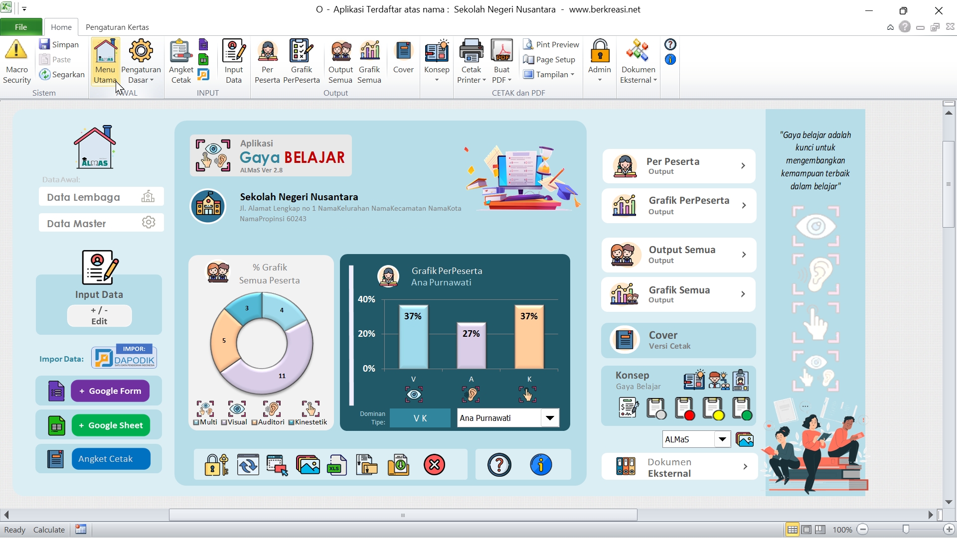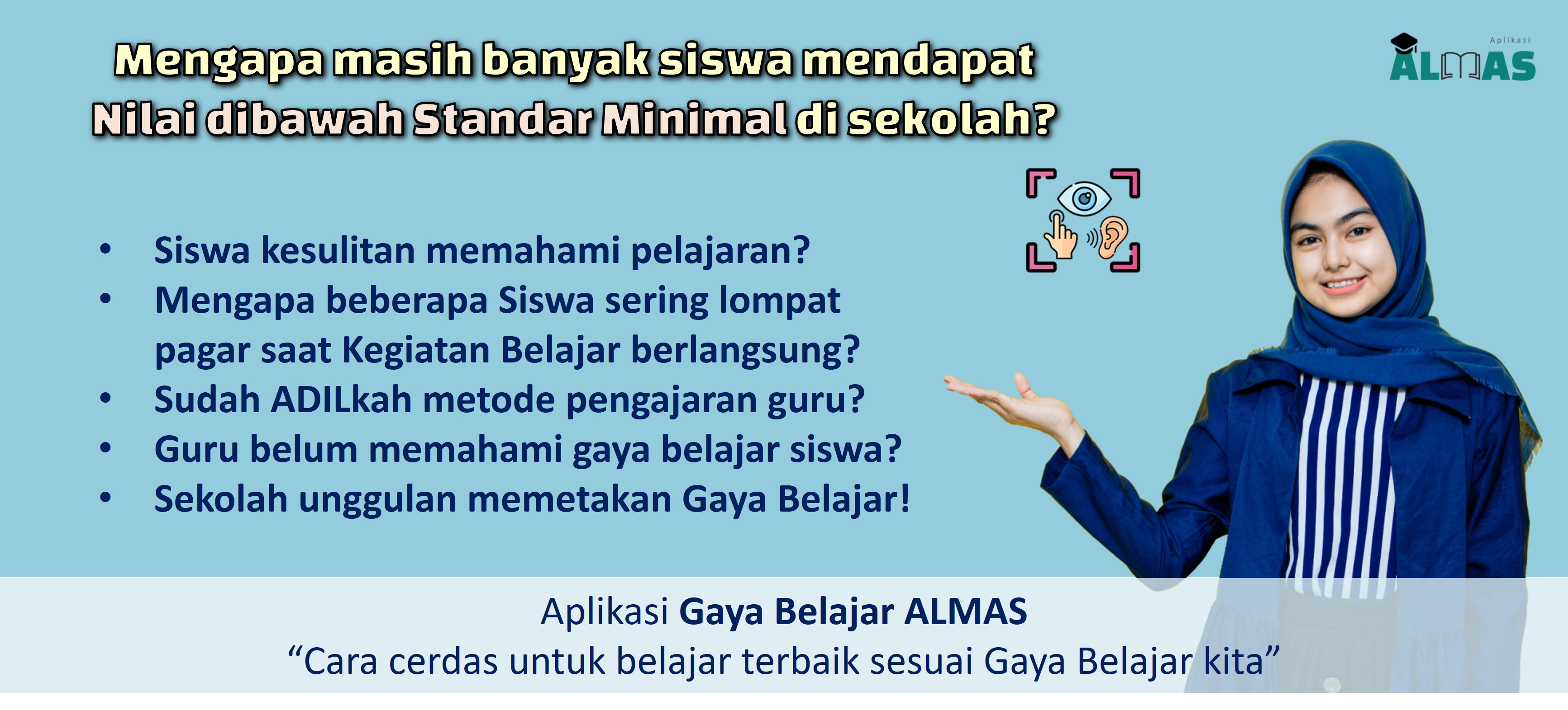 Setiap anak memiliki cara unik dalam memahami pelajaran. Ada yang lebih mudah menyerap informasi dengan melihat gambar, ada yang senang mendengarkan penjelasan, dan ada pula yang butuh praktik langsung agar benar-benar mengerti. Aplikasi Gaya Belajar ALMAS hadir sebagai solusi untuk mengenali dan memahami gaya belajar setiap siswa secara sistematis, cepat, dan praktis.