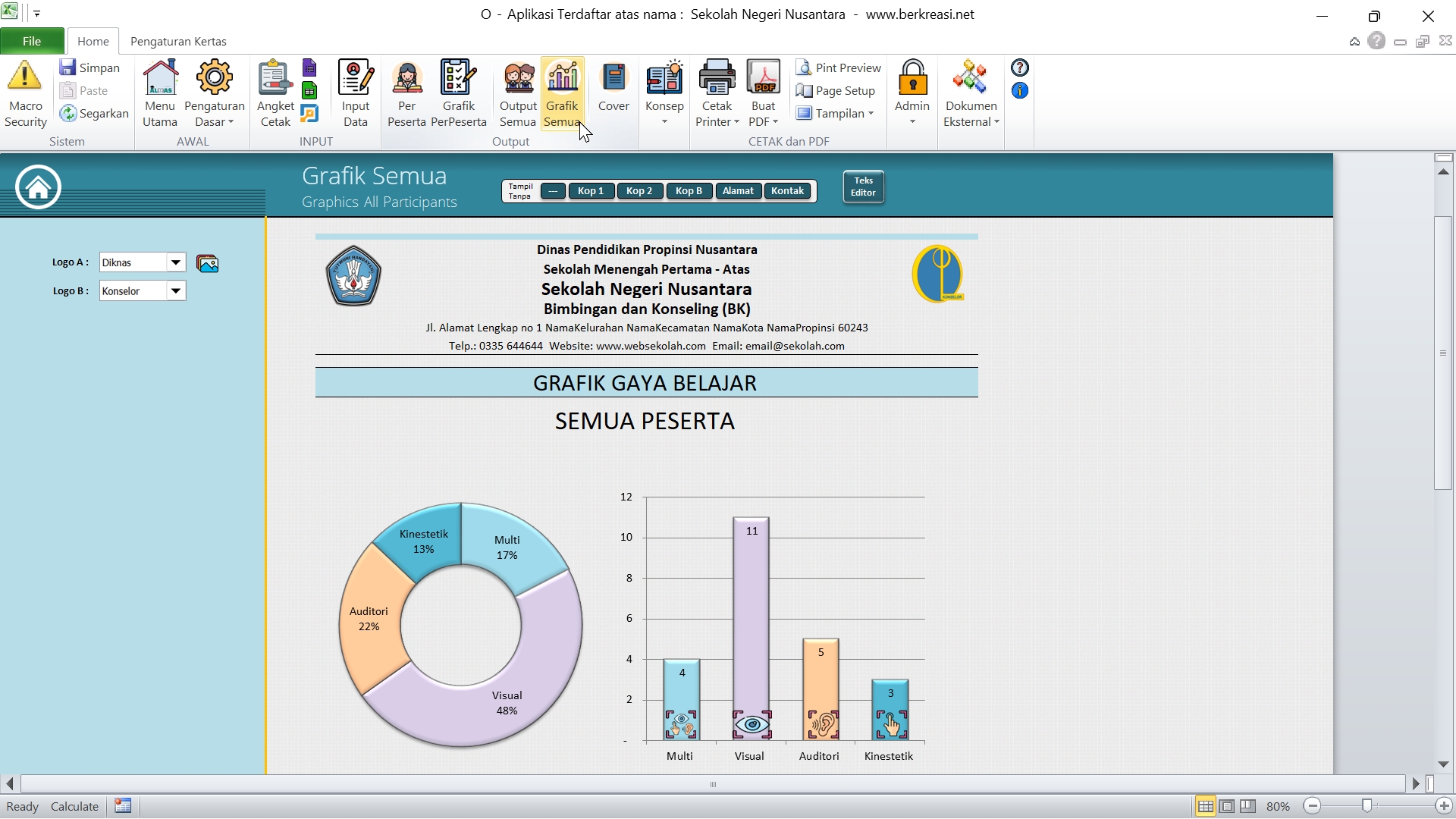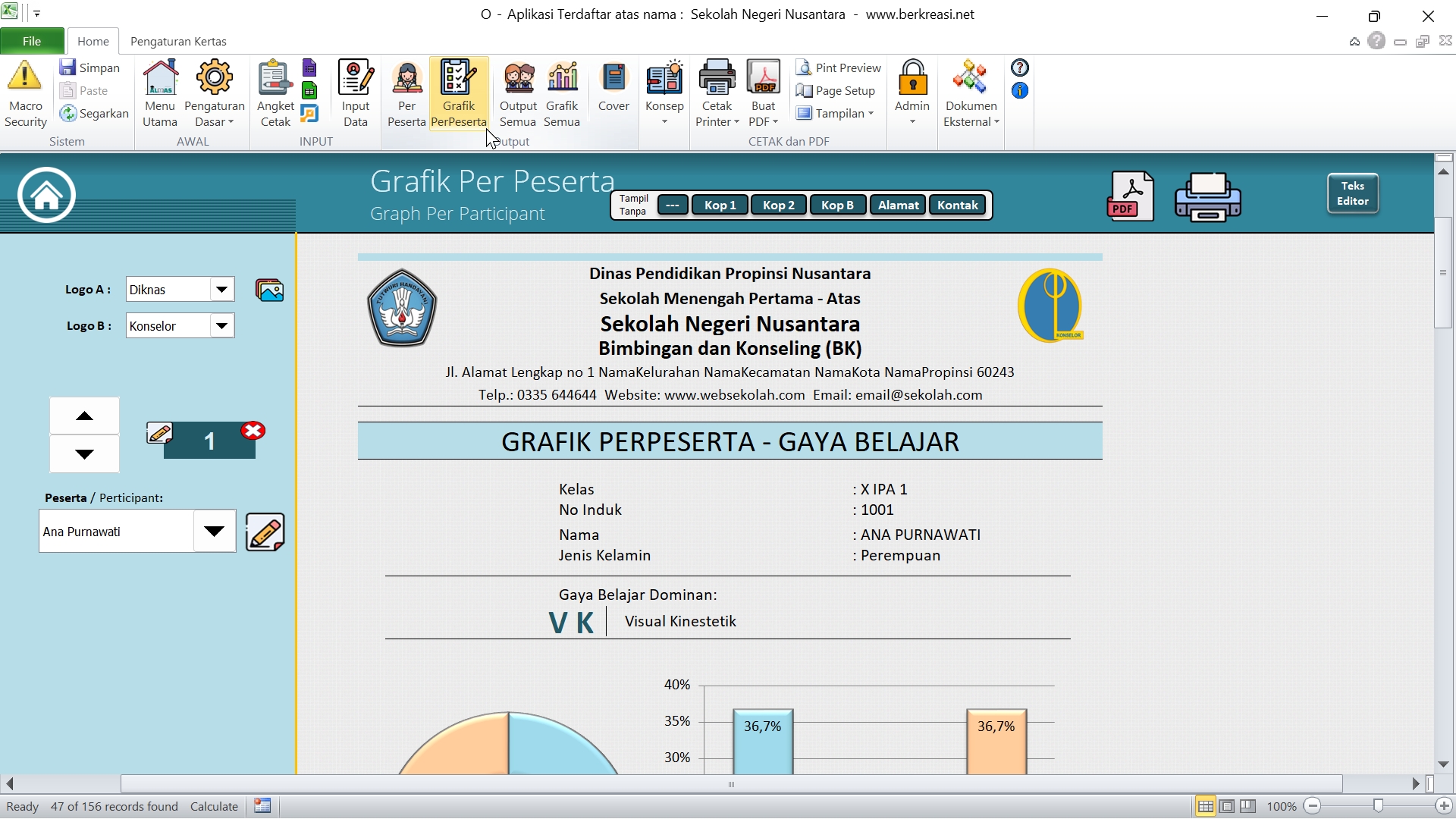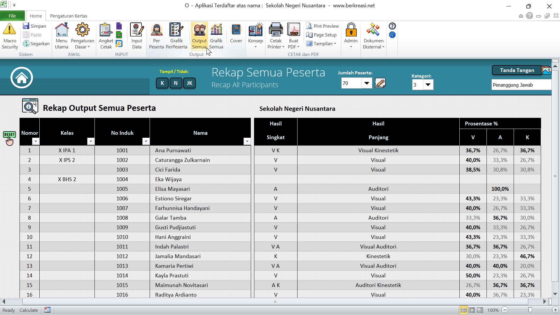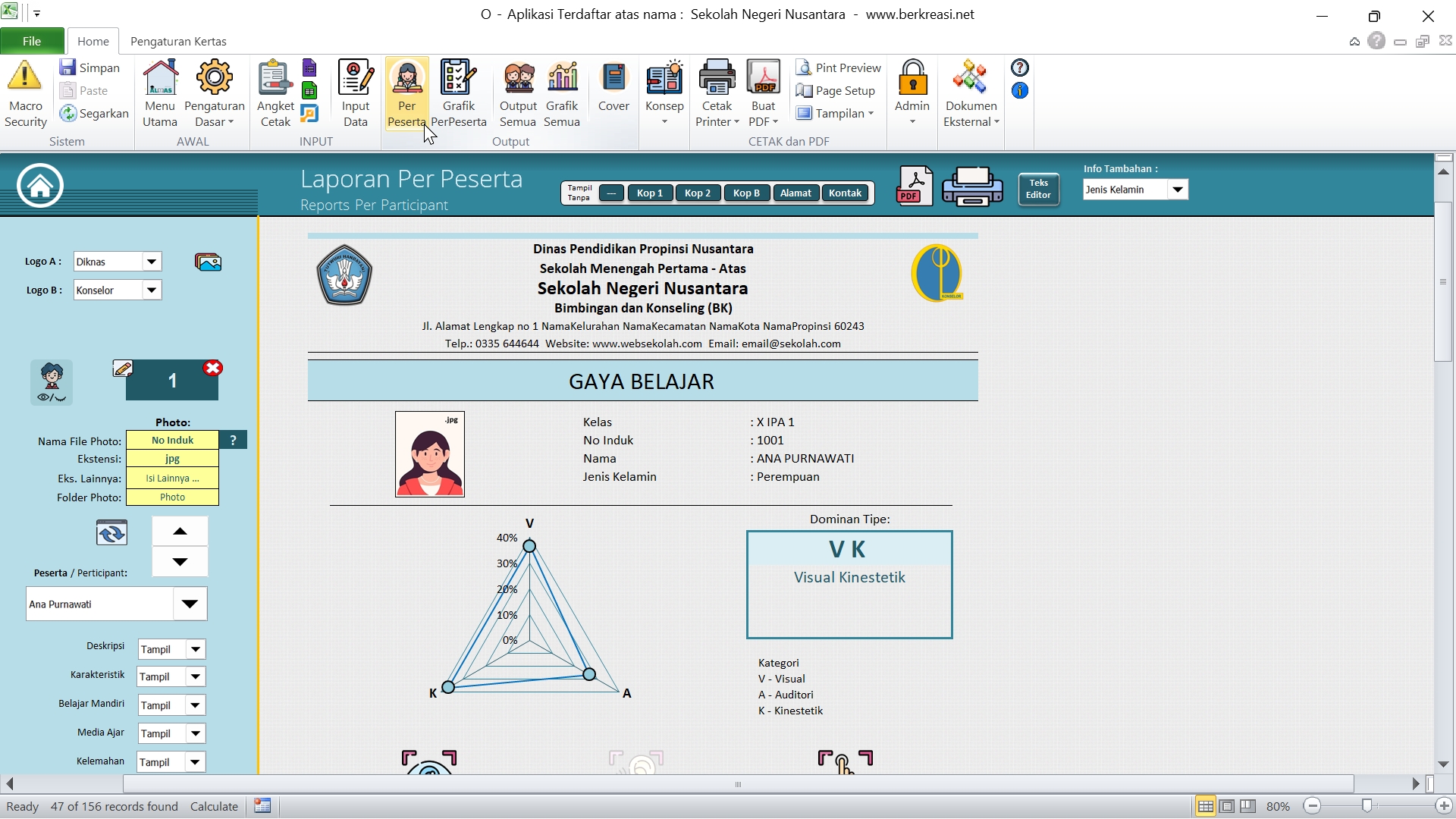 Setelah tes selesai, siswa bisa mendapatkan hasil gaya belajarnya secara otomatis, lengkap dengan deskripsi personal dan prosentase dominasi tiap gaya. -