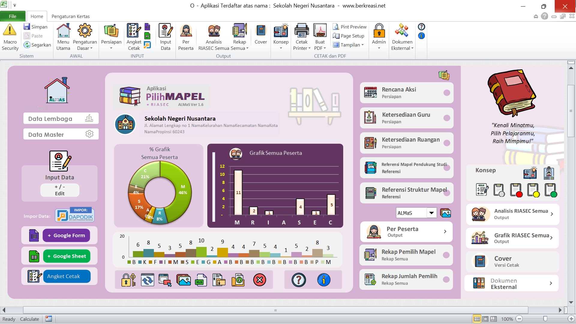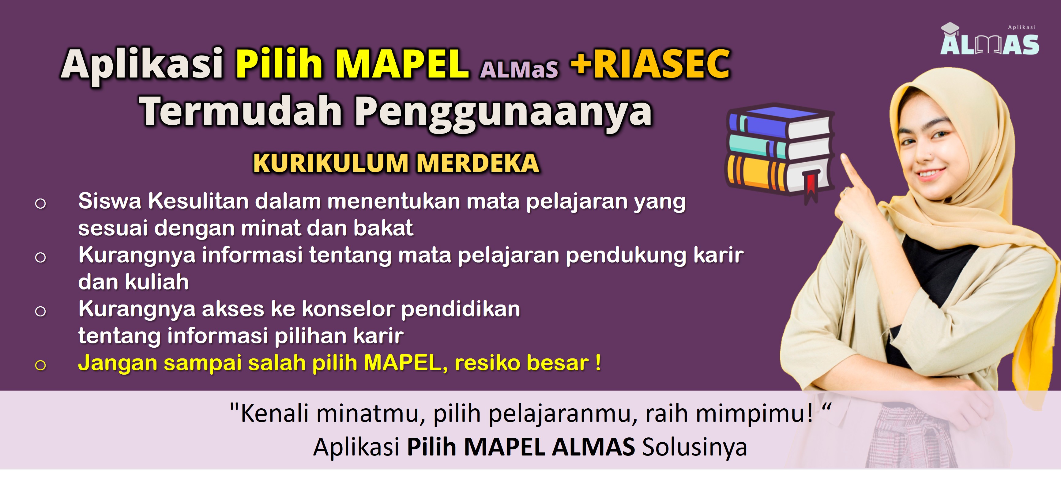Aplikasi Pilih Mapel ALMAS dirancang untuk menjawab kebutuhan tersebut. Ini adalah sebuah aplikasi berbasis excel yang membantu sekolah, guru BK, dan siswa dalam proses pemilihan mata pelajaran secara sistematis, objektif, dan mudah digunakan.