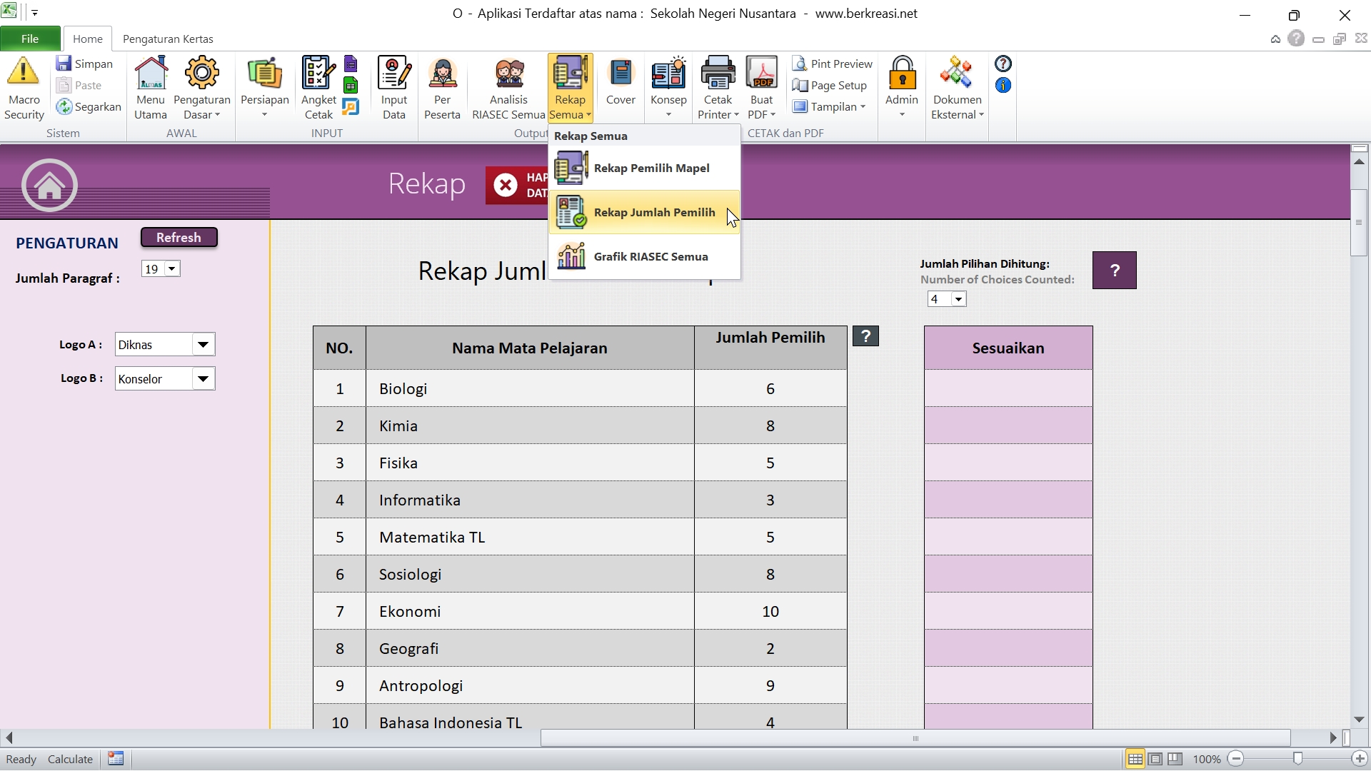 Tim Kurikulum/Kepala Sekolah: Menggunakan hasil untuk pengambilan kebijakan penjurusan atau pembukaan kelas peminatan.