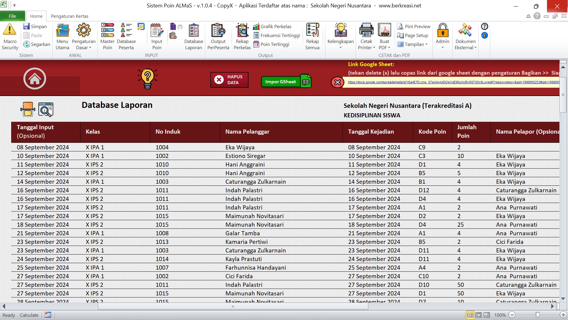 4. Monitoring: Wakil Kepala Sekolah atau BK memantau akumulasi poin setiap siswa dan mengevaluasi tindakan disiplin positif selanjutnya.