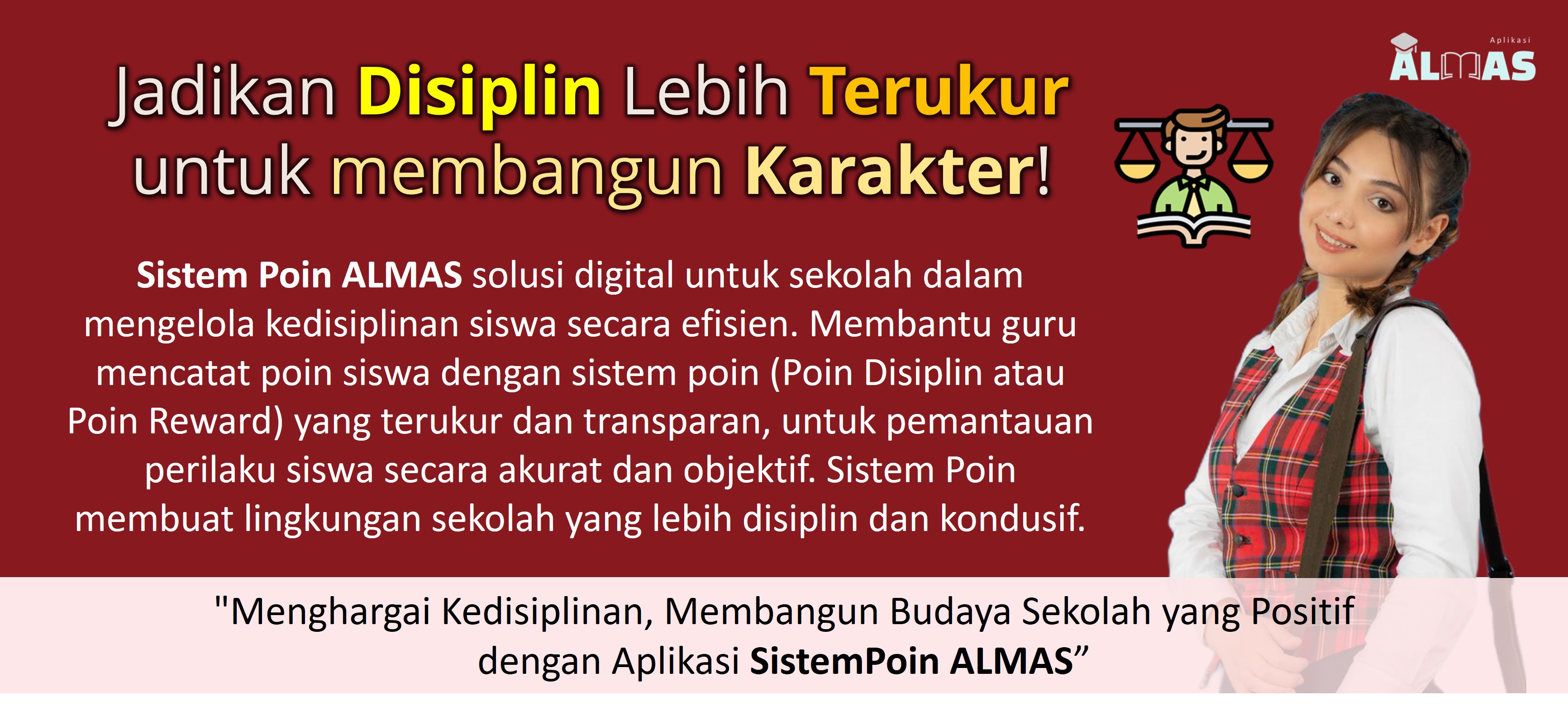 Tujuan dari aplikasi SistemPoin ALMaS adalah untuk memantau dan mengelola perilaku siswa di sekolah secara terukur dan sistematis. Aplikasi ini membantu sekolah dalam mencatat kesalahan disiplin, memberikan poin atau tindak lanjut Disiplin Positif berdasarkan jenis kesalahan, serta menghasilkan laporan yang membantu guru dan pihak sekolah dalam melakukan pembinaan dan pengawasan. Dengan sistem poin ini, siswa dapat lebih memahami konsekuensi dari tindakan mereka, sehingga diharapkan mampu meningkatkan kedisiplinan dan tanggung jawab siswa di sekolah.