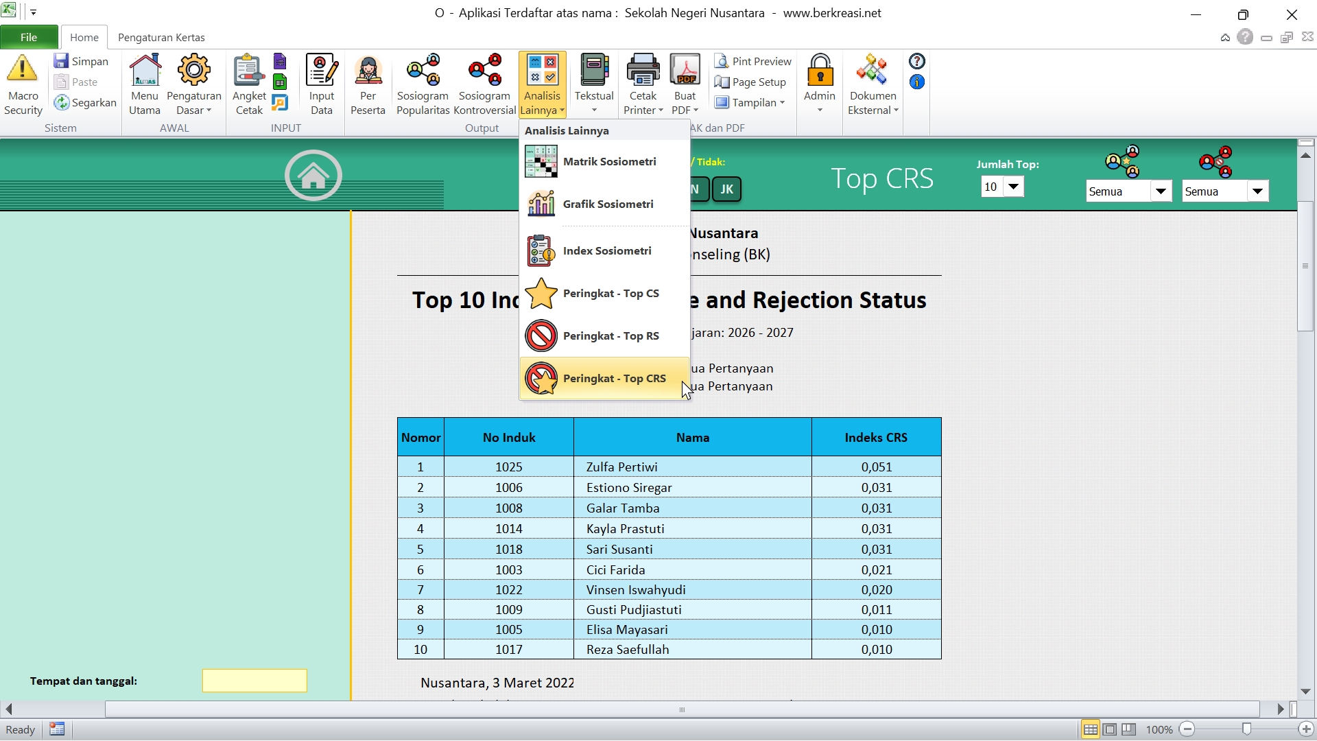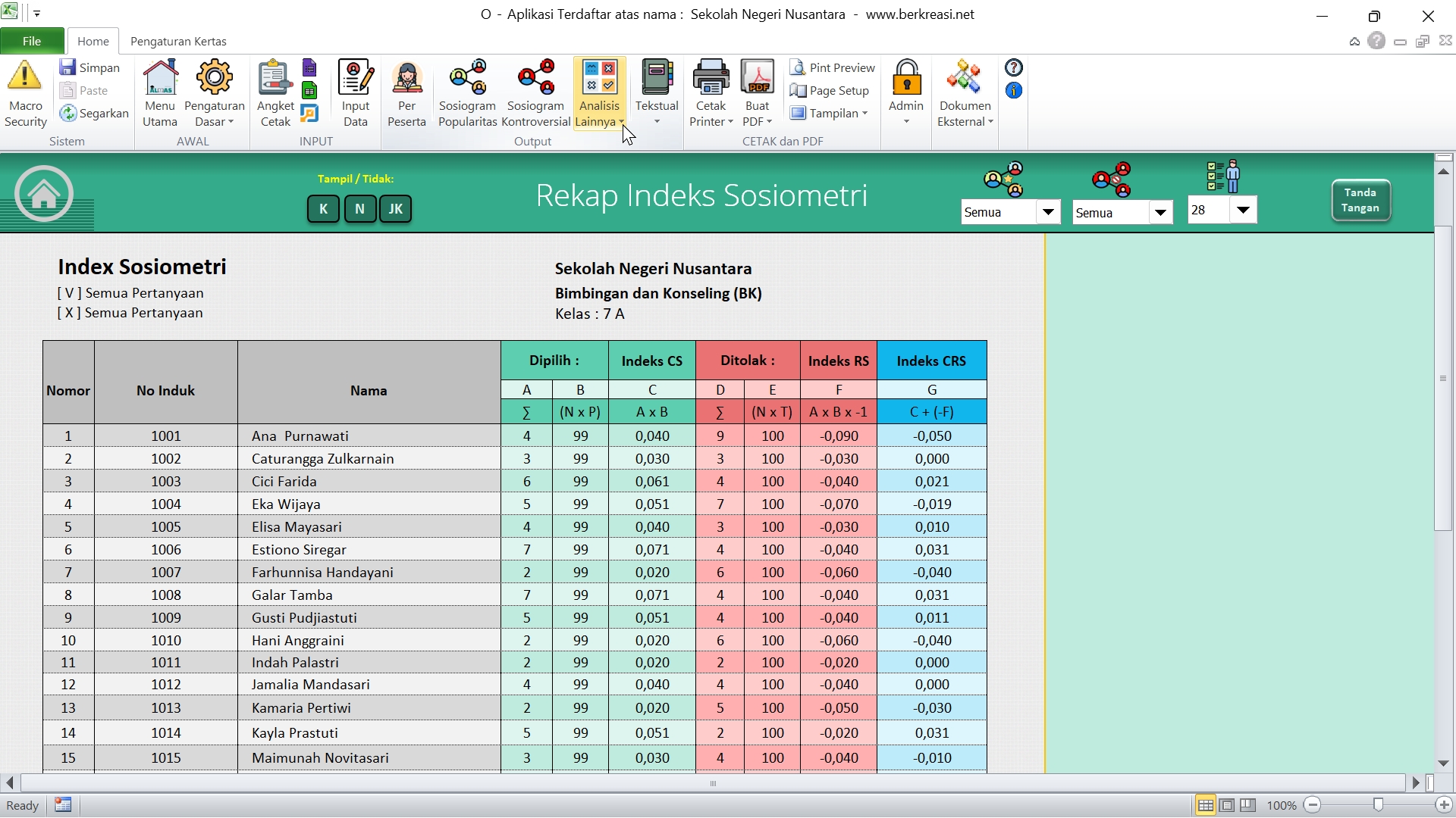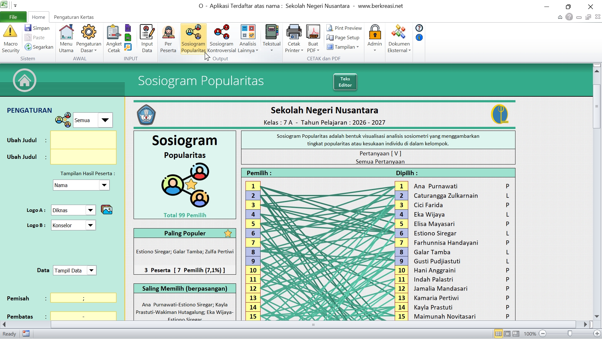 Data ini penting untuk membaca “jejaring sosial” di dalam kelas, mengungkap dinamika kelompok, dan mendesain intervensi yang berbasis pada realitas sosial yang sesungguhnya.
