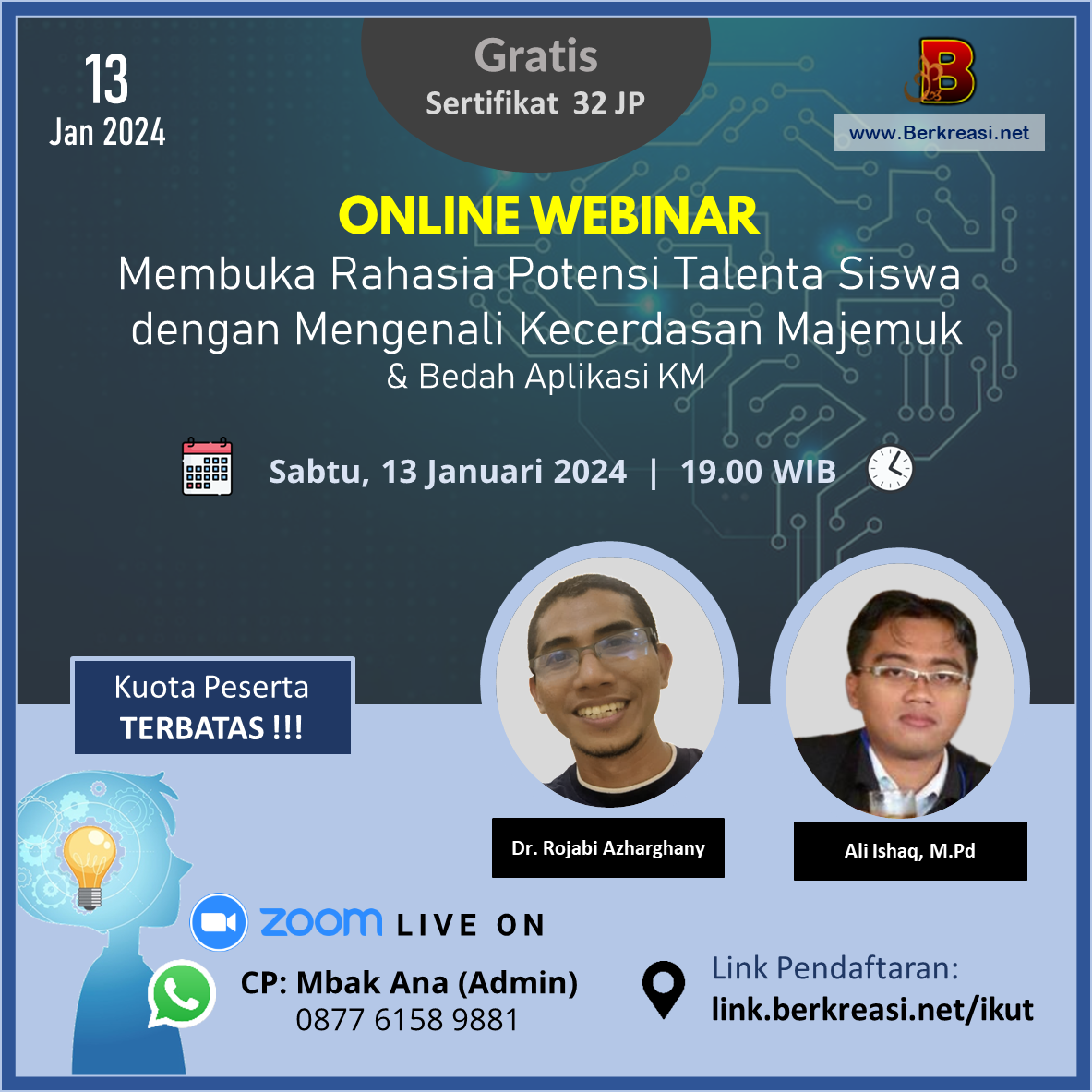 Mengoptimalkan potensi diri siswa dan mencapai kesuksesan yang gemilang dengan mengetahui rahasia kecerdasan terbaik? Kesempatan langka untuk bergabung dalam webinar inspiratif Mengenali Kecerdasan Majemuk!