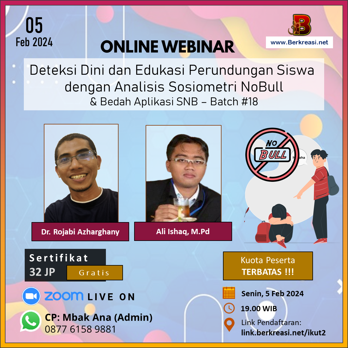 Pentingnya membuat lingkungan belajar yang aman dan ramah untuk mendukung prestasi siswa tanpa Perundungan. Kesempatan langka untuk bergabung dalam webinar inspiratif ini.