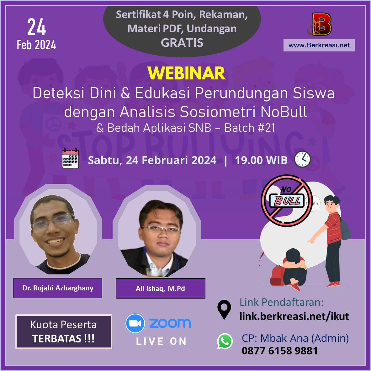 Pentingnya membuat lingkungan belajar yang aman dan ramah untuk mendukung prestasi siswa tanpa Perundungan. Kesempatan langka untuk bergabung dalam webinar inspiratif ini.