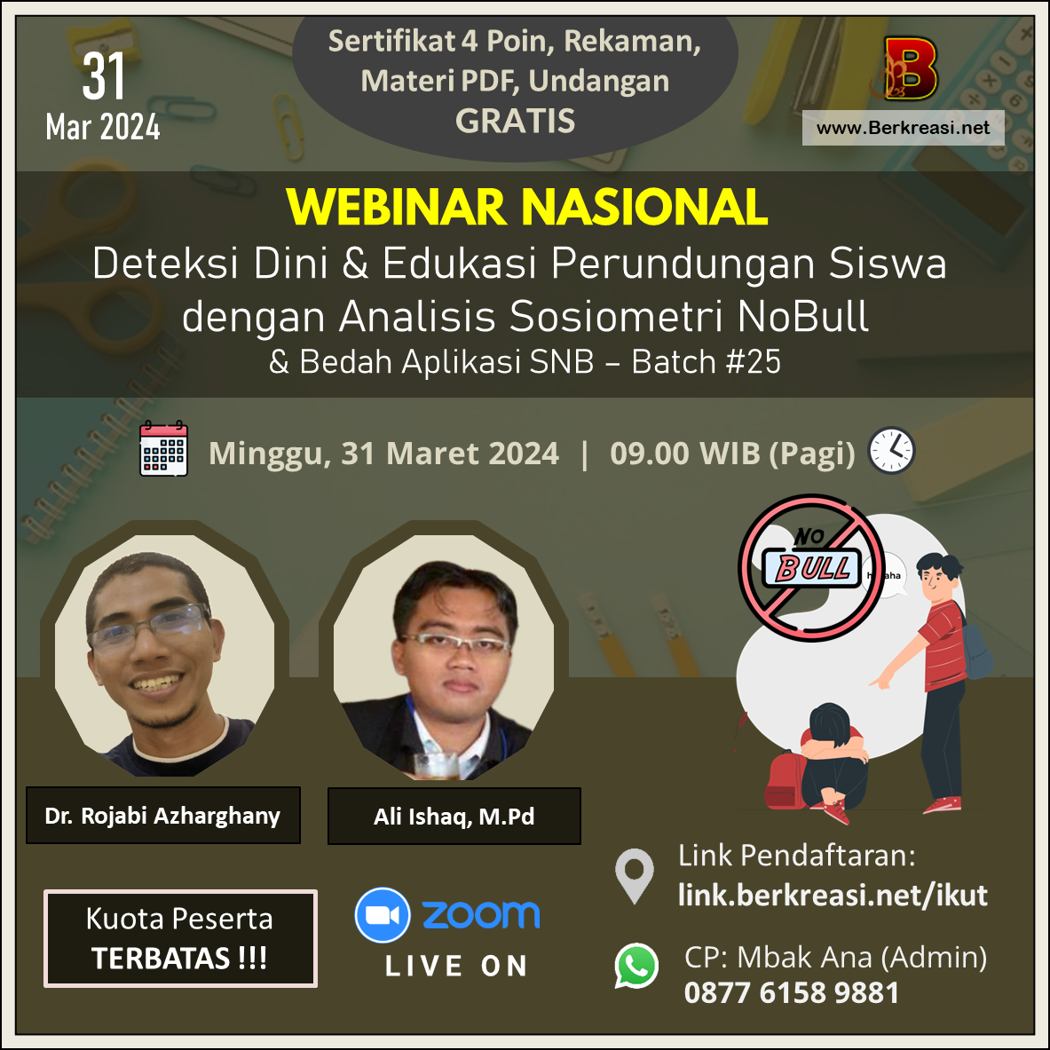 Pentingnya membuat lingkungan belajar yang aman dan ramah untuk mendukung prestasi siswa tanpa Perundungan. Kesempatan langka untuk bergabung dalam webinar inspiratif ini.
