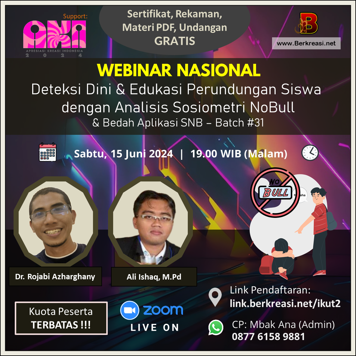 Pentingnya membuat lingkungan belajar yang aman dan ramah untuk mendukung prestasi siswa tanpa Perundungan. Kesempatan langka untuk bergabung dalam webinar inspiratif ini.